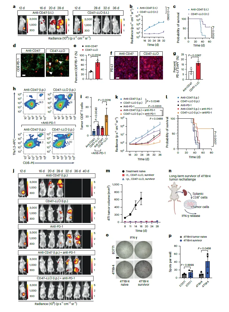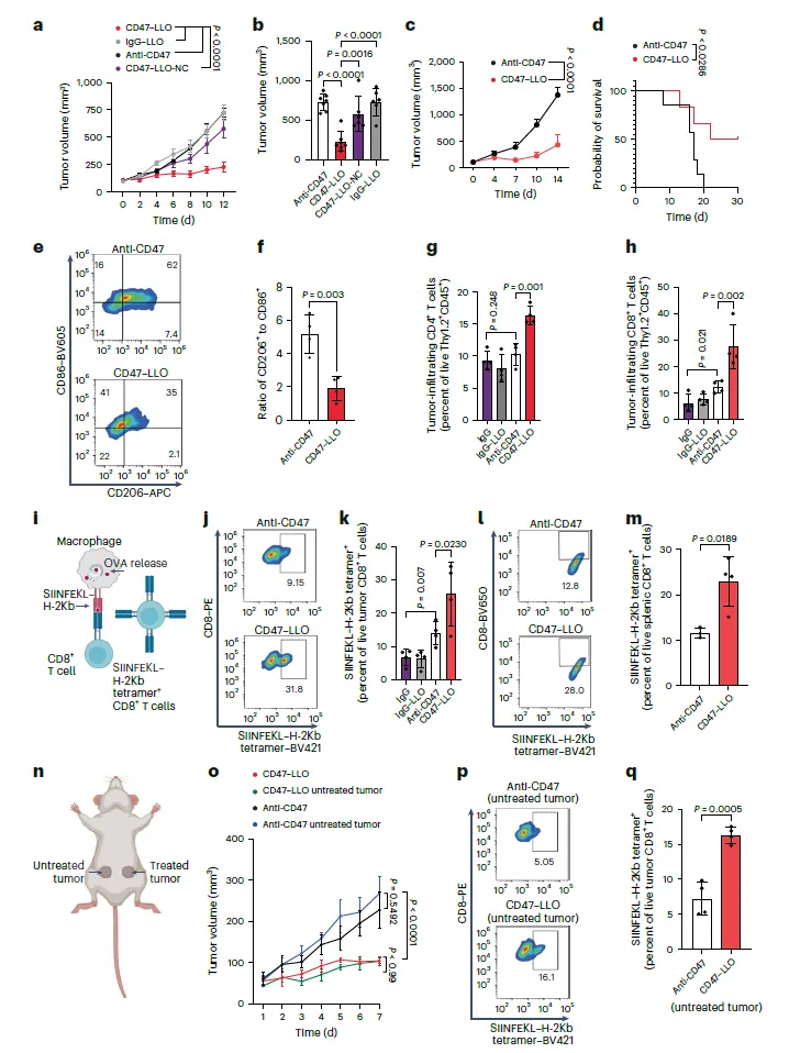 CD47-LLO在体内驱动肿瘤抗原驱动的T细胞反应(来源:Nature Cancer)