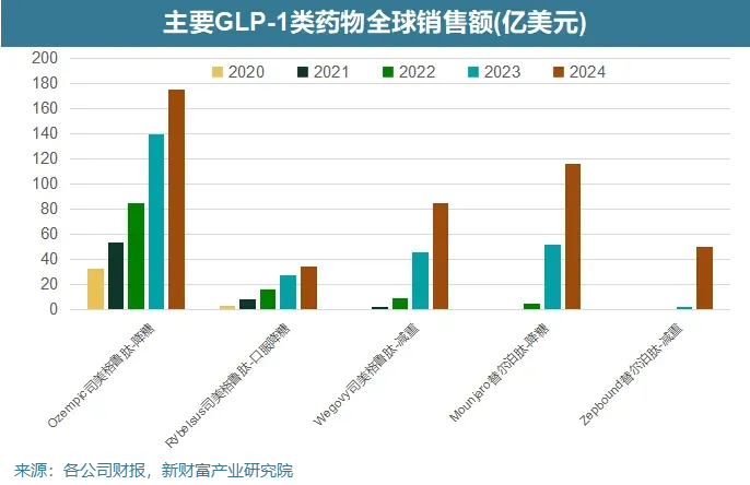 诺和诺德的司美格鲁肽2024年销售额超过290亿美元,位居全球畅销药第二名。而礼来2022年才获批上市的替尔泊肽放量速度更是前无古人,后也难见来者,2024年销售额已达165亿美元。
