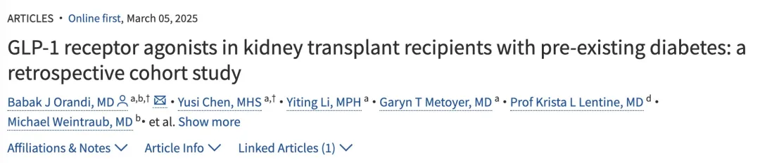 该研究由纽约大学朗格尼健康中心(NYU Langone Health)发起,研究汇总了2013至2020年间来自美国的18016名患有糖尿病的肾移植患者的诊疗记录,其中1916人接受了GLP-1药物治疗。