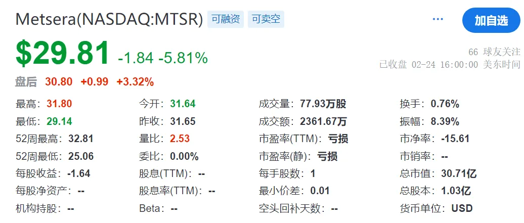 药融圈和大家分享了Metsera融资的消息(华人科学家再联合创业,融了2.15亿美金B轮的Biotech)。2025年1月31日,该公司在纳斯达克上市,首日股价大涨47%,募资2.75亿美元,截止2025年2月24日,公司总市值达到30.71亿美元。今天发稿前,市值为25亿美元。