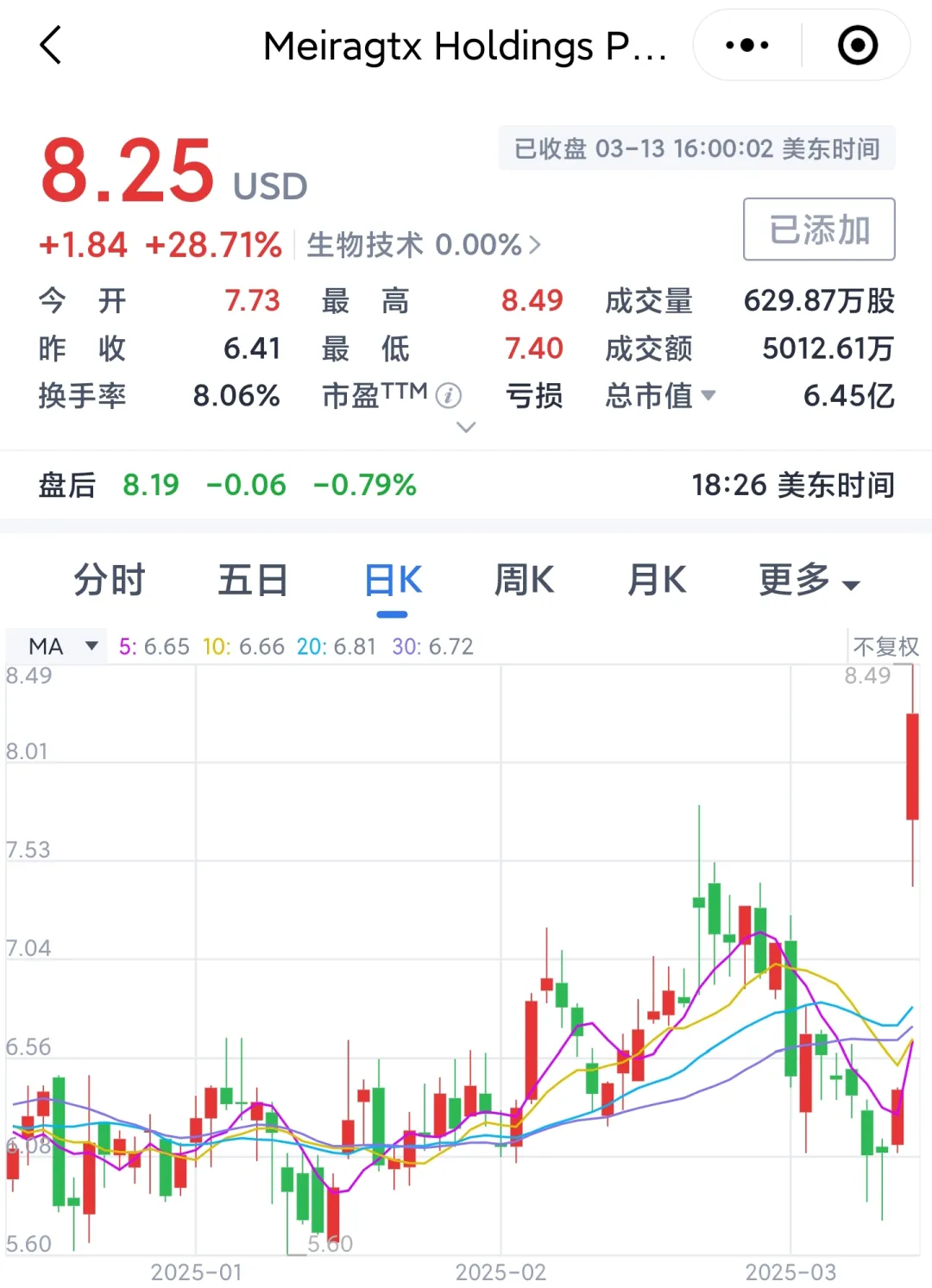 受此消息影响,MeiraGTx公司股价上涨28.7%。