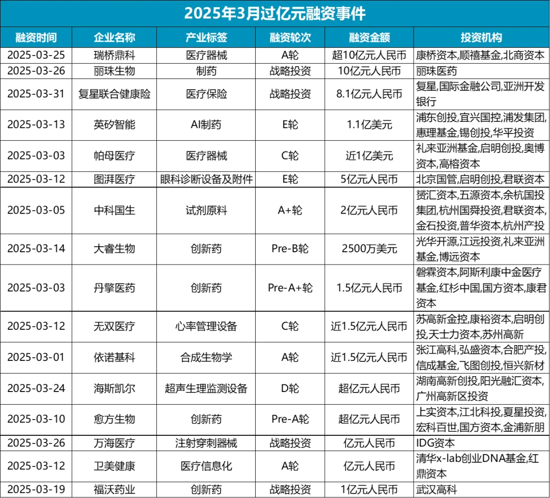 今年3月投融资事件中,获得融资金额最多的公司毫不意外地来自于医疗器械领域。