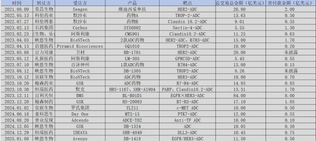 从2021年荣昌生物维迪西妥单抗以26亿美元授权出海,到2022年科伦博泰与默沙东达成总金额超百亿美元的ADC合作,再到2023年百利天恒凭借双抗ADC与BMS签下单个项目84亿美元的“天价交易”,国产ADC的License out纪录一次次刷新行业认知。