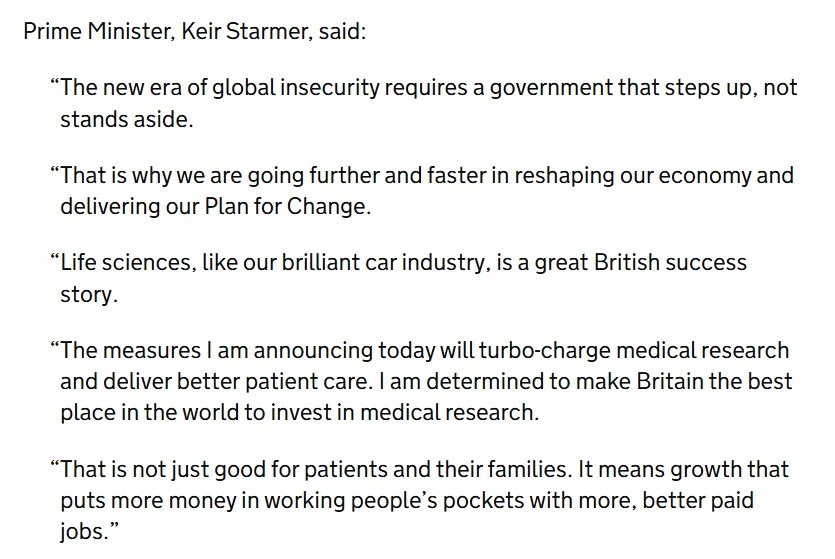 如今,随着特朗普政府的关税战争开始为全球带来不确定性,英国政府看准了这次机遇打算“挺身而出”,开展一项新临床法规以吸引更多商业临床试验,英国政府称其为“涡轮增压”计划,寓意像英国的汽车工业一般打造生命科学行业。