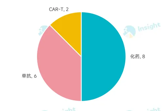 从肿瘤药物类型来看,有 2 款 CAR-T、6 款单抗、8 款化药。传奇生物西达基奥仑赛与药明巨诺瑞基奥仑赛 2 款 CAR-T 产品总共贡献了 70.86 亿元。而单抗产品和小分子化药的销售额分别达到了 118.12 亿元和 275.74 亿元。不同药物类型的抗肿瘤药数量
