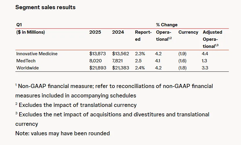 “强生公司独特的多元化产品组合的力量在本季度得到了充分展示,强劲的运营销售增长增强了我们对2025年指引的信心,”Joaquin Duato补充表示。
