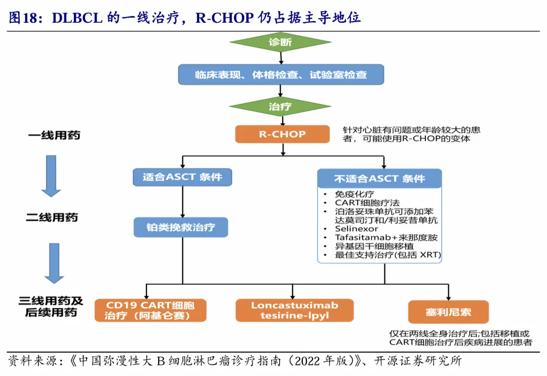 值得注意的是,DLBCL复发概率较高,尤其在患者治疗后的前两年内,约30%-40%的DLBCL患者在初次治疗后出现复发。在DLBCL复发一旦进入二线治疗阶段,目前治疗方案存在极大的迭代需求,仅20%-30%的患者可以实现再缓解。