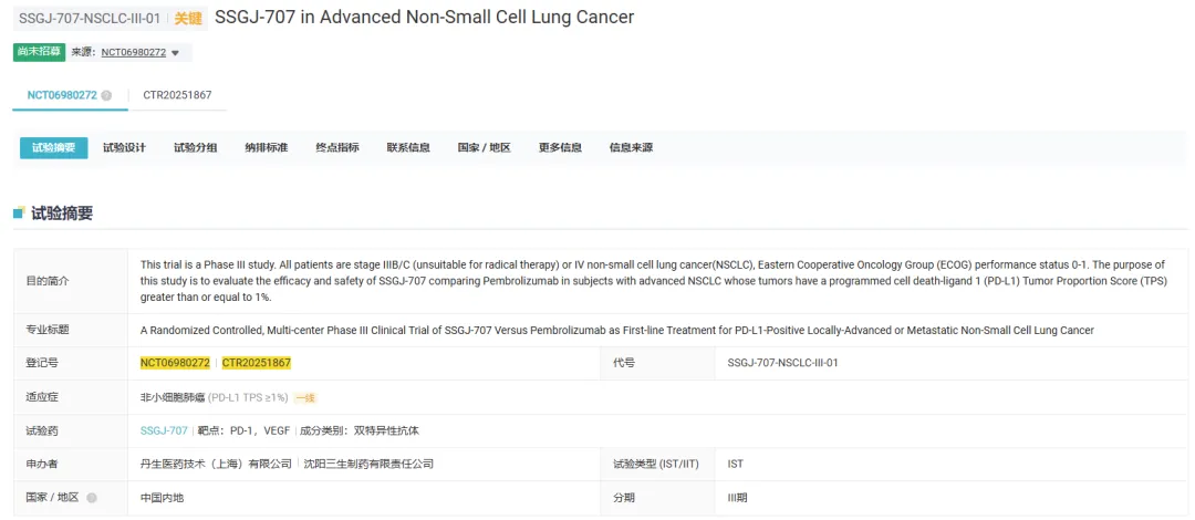 5 月 12 日,三生制药在国内启动一项随机、对照、双盲 III 期临床研究,旨在评价 SSGJ-707 对比帕博利珠单抗一线治疗 PD-L1 阳性的局部晚期或转移性非小细胞肺癌的有效性。研究拟纳入 420 人,主要终点指标是由独立影像评估委员会(IRRC)基于 RECIST v1.1 评估的 PFS。