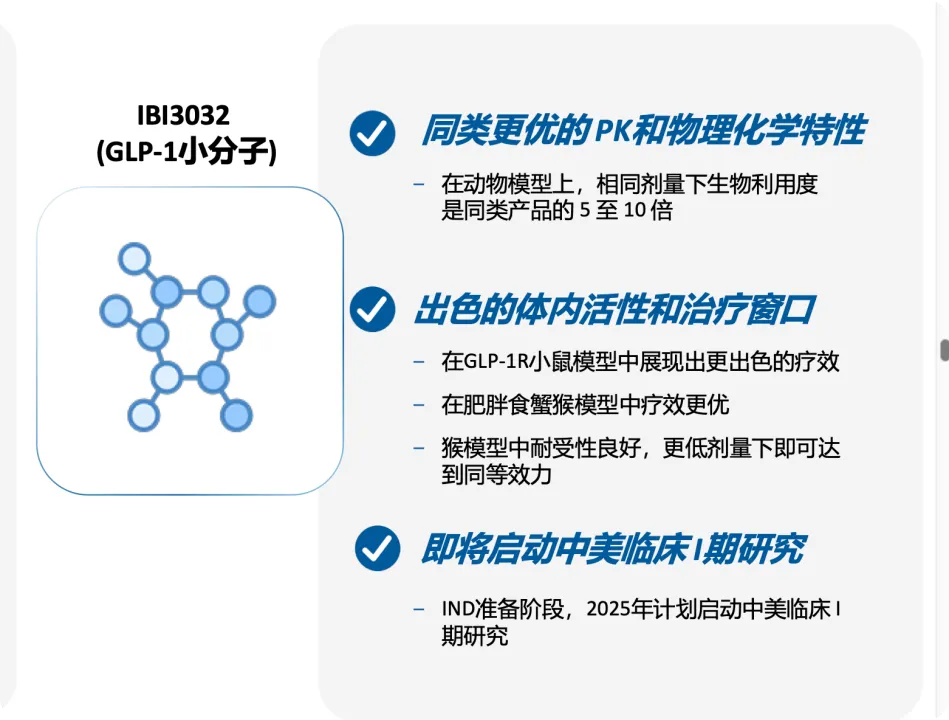 除此之外,信达也在为下一代减重药物迭代做着充足的准备。一方面,信达布局了GLP-1小分子药物,紧随大潮,在动物模型上,其相同剂量下生物利用度是同类产品的5-10倍。从前几个月的BD来看,该药有了临床I期结果后,或许是BD的黄金窗口期。
