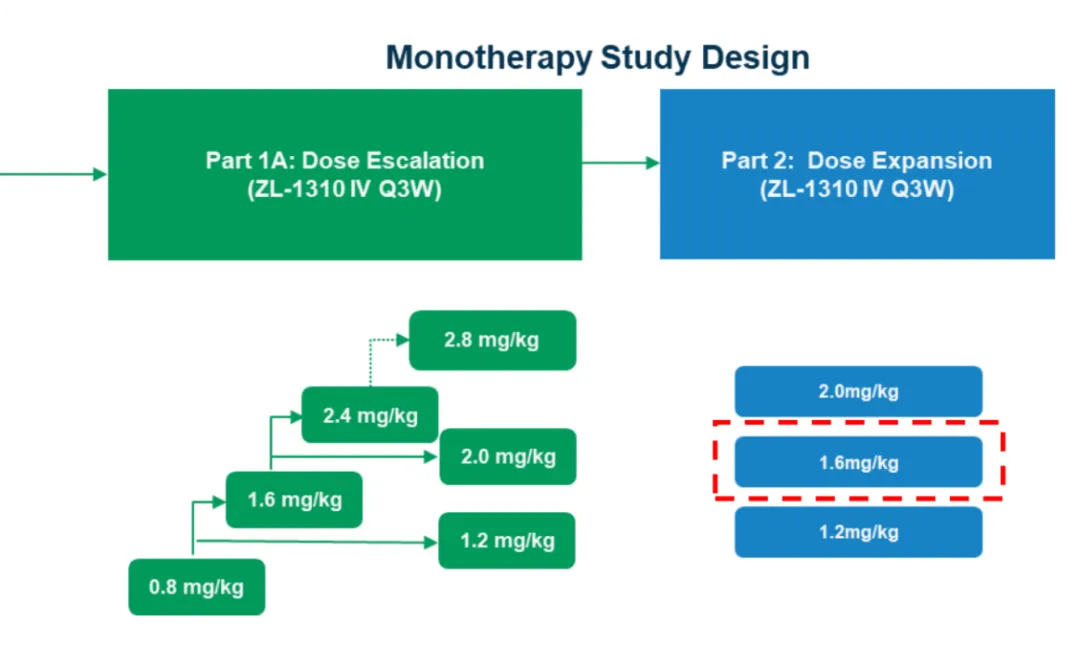 而ZL-1310的剂量同样如此,在剂量递增阶段,只尝试爬到2.4mg/kg。