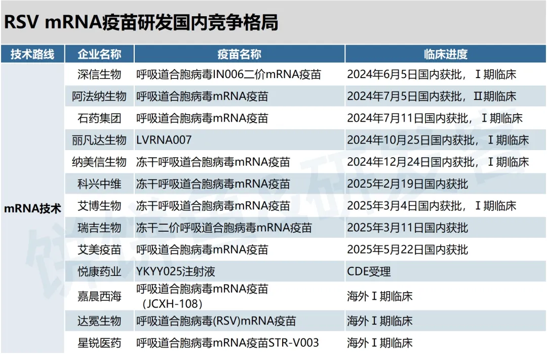 在这条规模达百亿的赛道中,临床推进效率正成为决定胜负的关键因素。目前,已进入Ⅱ期试验的3家企业(阿法纳生物是mRNA技术路线,迈科康生物、神州细胞是重组蛋白技术路线)已然建立起先发优势。不过,后来者仍有翻盘的可能,关键在于能否在后续的临床开发过程中实现“提速”,并精准把握住机遇窗口期。