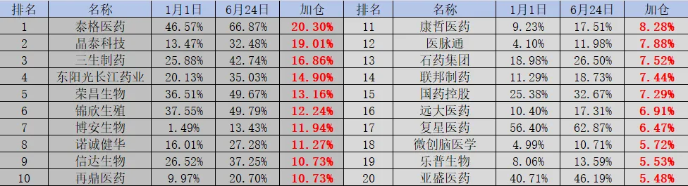 具体来看,泰格药业、晶泰科技、三生制药、东阳光长江药业、荣昌生物、锦欣生殖、博安生物、诺诚健华、信达生物、再鼎医药、康哲医药、医脉通、石药集团、联邦制药、国药控股、远大医药、复星医药、微创脑医学、乐普生物、亚盛医药为内资占比提升最快的20家公司。