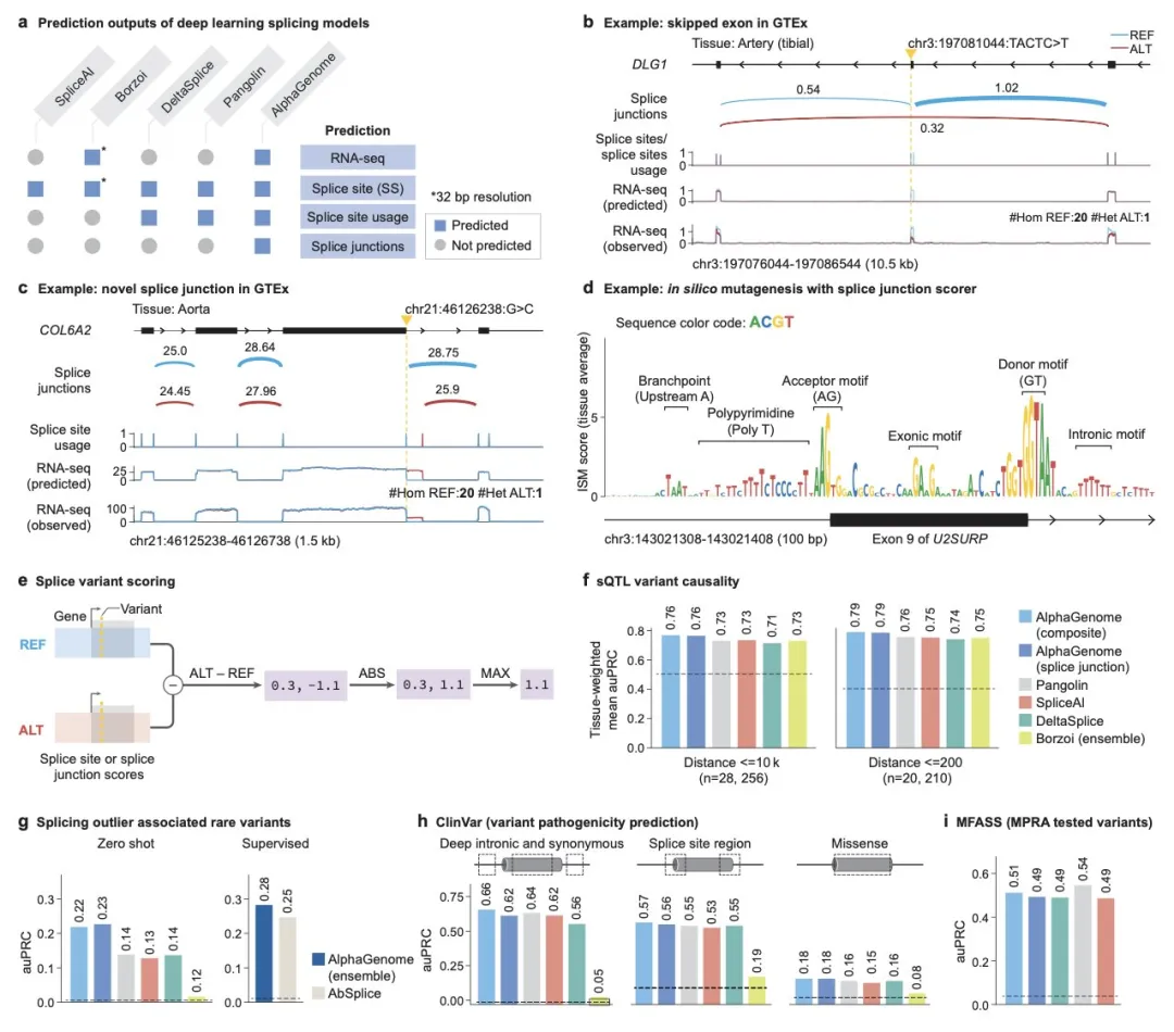 RNA剪贴错误是造成疾病的常见原因,AlphaGenome的创新性在于,能够直接从序列预测剪切点。