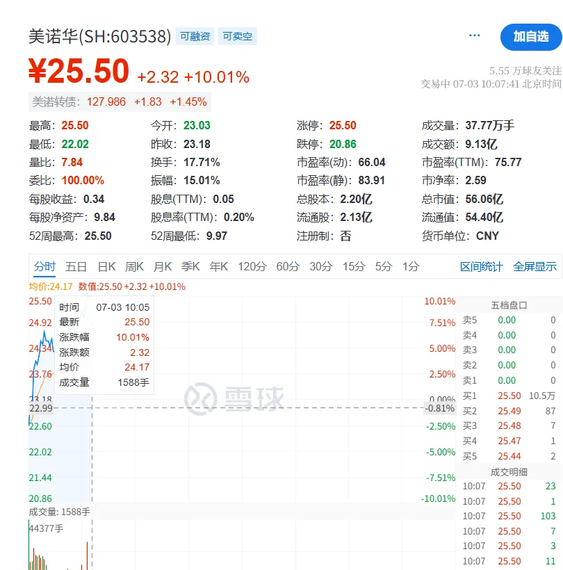值得注意的是,5月至今美诺华股价累计涨幅达54%,今日开盘截至发稿前也涨超10%。
