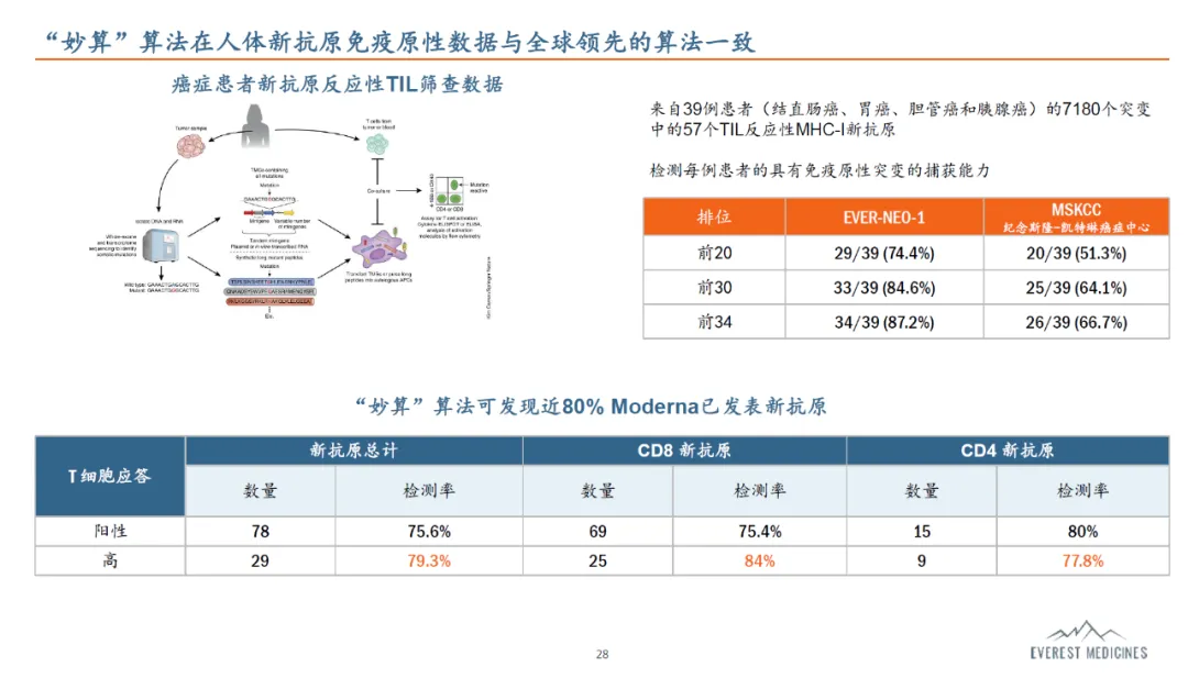 与EVM14表达TAA不同,EVM16是一款AI算法驱动识别肿瘤新抗原的新型mRNA个性化肿瘤治疗性疫苗。根据每位患者特有的肿瘤细胞突变,云顶新耀使用自主研发且具备自我迭代能力的EVER-NEO-1“妙算”肿瘤新抗原AI算法系统,识别出具有较高免疫原性的肿瘤新抗原,并设计出编码数十种肿瘤新抗原的mRNA治疗性疫苗。