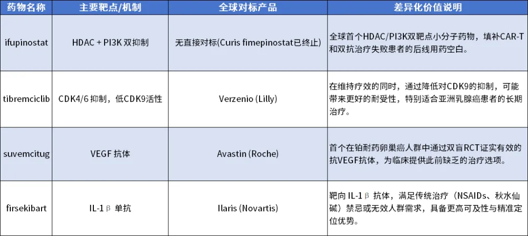 在这些产品背后,我们看到的已不再是“仿制替代”的逻辑,而是机制差异化、适应症先发、全球竞品对接的新路径。它们代表着中国本土生物科技在机制创新、临床设计、患者定位与国际竞争中的多重发力,也让从中国诞生的全球首创药不再只是个例。