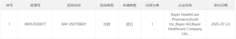 7月23日,拜耳1类新药BAY 2927088片的上市申请获CDE受理,作为一款针对HER2突变非小细胞肺癌(NSCLC)的口服酪氨酸激酶抑制剂(TKI),该药物此前已相继获得美国FDA和中国CDE的突破性疗法认定。