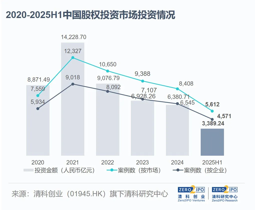 2025年上半年投资案例数和金额同比均回暖,投资总规模超3,300亿元