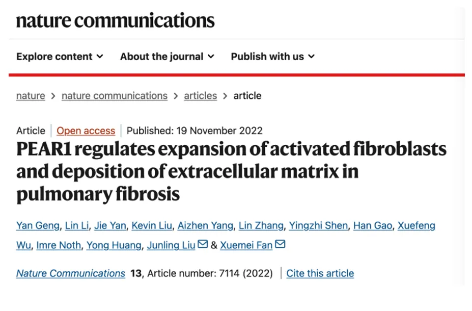 •创始人刘俊岭教授率先揭示了PEAR1靶点在纤维化领域的核心作用。