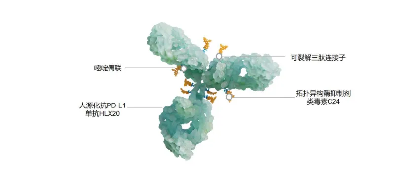 HLX43是一款靶向程序性死亡-配体1(PD-L1)的新型ADC候选药物,由公司自研的全人源IgG1抗PD-L1抗体,与宜联引进的创新连接子-拓扑异构酶抑制剂荷载偶联而成,药物抗体比(drug-to-antibody ratio, DAR)约为8。