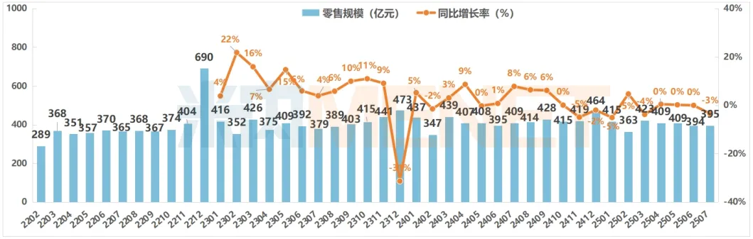 2025年7月中国实体药店市场零售规模及变化趋势