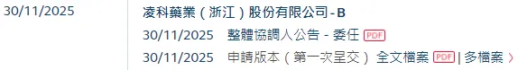 2025年11月30日,来自浙江杭州钱塘新区的凌科药业(浙江)业股份有限公司LYNK PHARMACEUTICALS CO., LTD.(以下简称“凌科药业”)向港交所递交招股书,拟香港主板IPO上市。