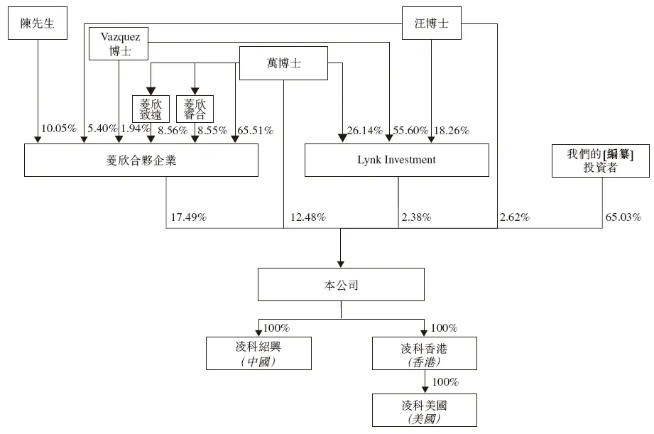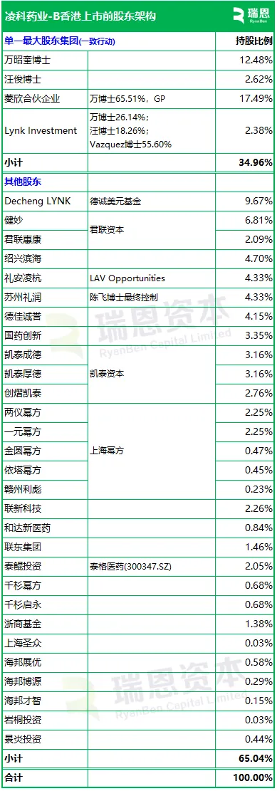 万博士、汪博士、Vazquez博士、陈先生、菱欣合伙企业及Lynk Investment,合计持股约34.96%,为单一最大股东集团。