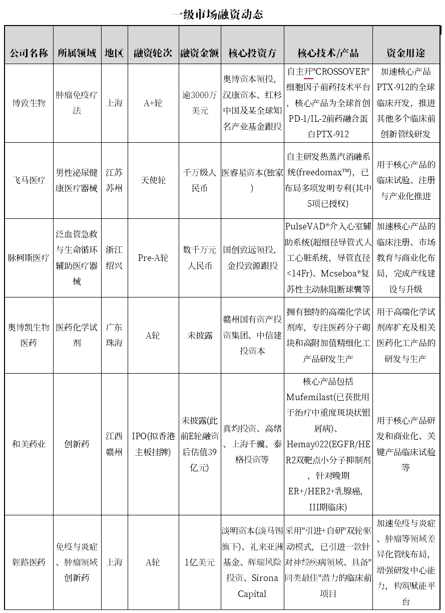 2025年12月1日至5日,中国生物医药领域延续高活跃态势,融资聚焦肿瘤免疫、创新药研发等核心赛道,再融资成为A股药企补充资金、推进项目的重要手段。同时,政策端生物制造新政落地,行业端流感疫情推动相关细分领域需求上升,创新管线加速推进,整体呈现“融资与再融资并行、政策与市场双驱动”的特点。以下为上周融资动态、行业政策及市场趋势的全面分析。