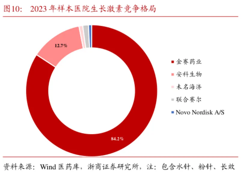 安科生物是国内最早涉足生物医药研发、生产、销售的企业之一,拥有30多年生物制药经验沉淀,以及20余年生长激素临床推广团队与市场经验。从国内市场竞争格局看,安科生物市场份额仅次于第一名的金赛药业,其主力短效生长激素产品在2019年才上市,能够在短短几年内抢下市占第二的市场地位属实不易。