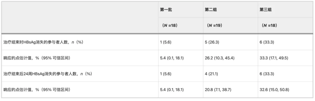 主要复合疗效终点为:在未开始使用任何抑制HBV复制的药物的情况下,计划结束bepirovirsen治疗后24周内,HBsAg水平低于检测下限(0.05