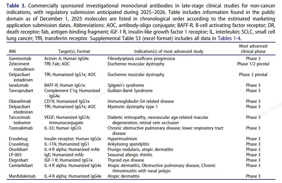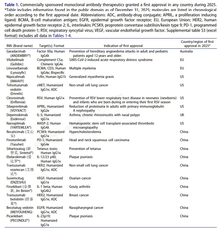 2025年全球获批的抗体新药