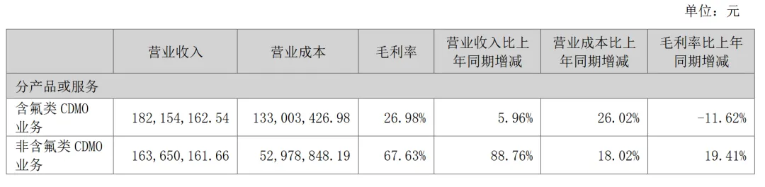 2025年上半年,可以发现情况发生了大转变,仅半年公司非含氟类CDMO业务已经实现近1.64亿收入,同比增长88.76%;毛利率也有脱胎换骨的变化,非含氟类CDMO业务毛利率从2024年的29.1%提升至2025H1的67.63%。