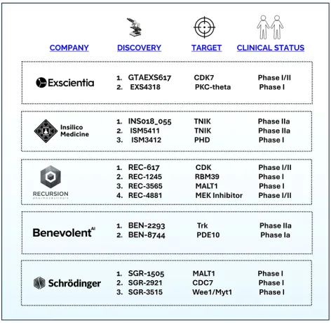 图 3. 领先的 AI 药物研发公司及其临床管线