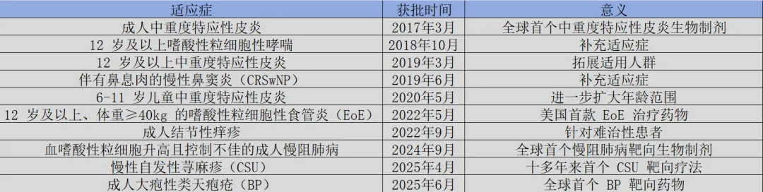此外,颇具前瞻性的临床设计与持续的适应症拓展,是 Dupixent 不断突破营收天花板、实现业绩持续放量的关键抓手。