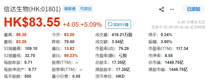 2026年2月8日,信达生物发布公告,与礼来制药达成全球战略合作,推进肿瘤及免疫领域的新药研发。受此消息影响,信达生物今早开盘股价涨超5%。