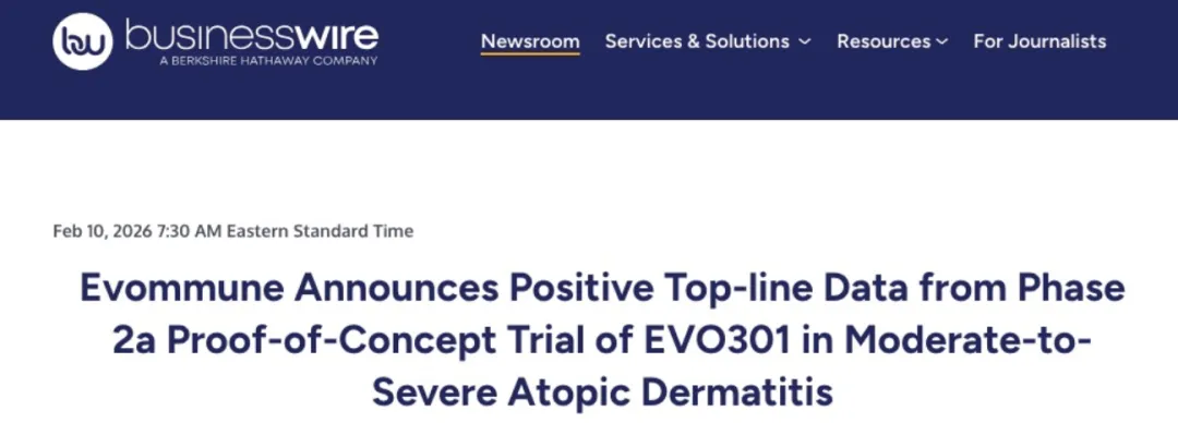 美国时间2月10日,Evommune公司宣布其长效融合蛋白EVO301在特应性皮炎(AD)的中期临床试验中取得胜利。数据显示,该产品的症状清除效果与再生元和赛诺菲的重磅药物Dupixent相当。