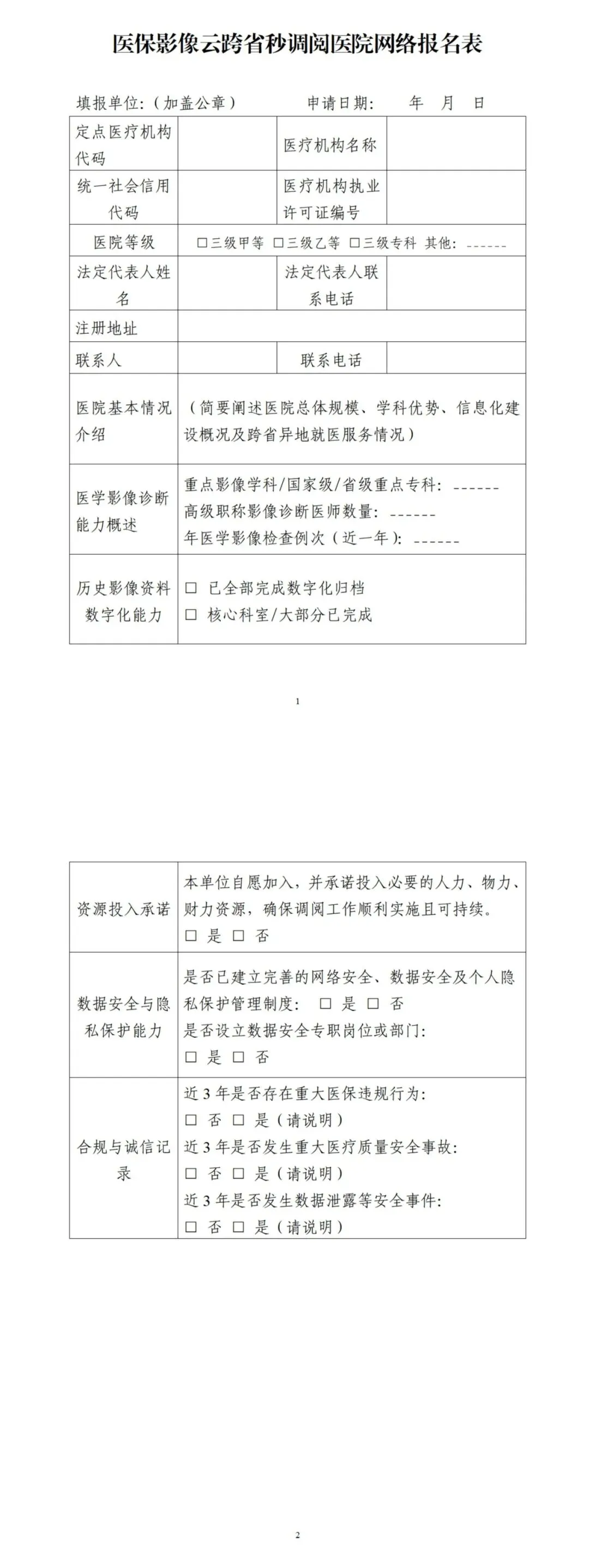 附件:医保影像云跨省秒调阅医院网络报名表