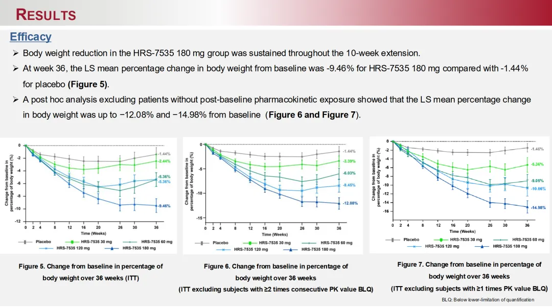 除了GLP-1/GIP受体双激动剂肽HRS9531片/KAI-9531外,恒瑞/Kailera在此之前也公布过小分子GLP‑1受体激动剂HRS‑7535/KAI-7535的26周、36周数据。