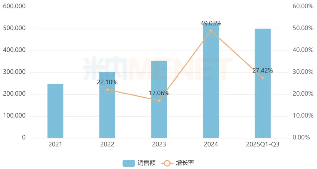 沙库巴曲缬沙坦是由沙库巴曲(脑啡肽酶抑制剂)和缬沙坦(血管紧张素II受体拮抗剂)组成的复方制剂,用于治疗原发性高血压、慢性心力衰竭等。近年来,中国公立医疗机构终端沙库巴曲缬沙坦的销售额均以两位数的增速持续上涨,2025前三季度接近50亿元。从厂家格局看,原研厂家诺华独占市场份额超90%,科伦药业紧接其后。