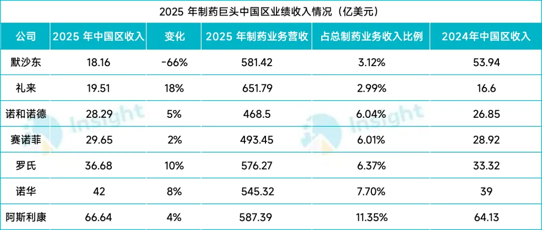 另外值得注意的是,2025 年,这 7 家跨国药企在中国市场合计收入 241 亿美元,与 2023 年(261.74 亿美元)、2024 年(262.76 亿美元)相比明显减少,再次印证了:中国市场正在从过去的确定性增长引擎,转变为更依赖产品竞争力与本土化能力的结构性市场。