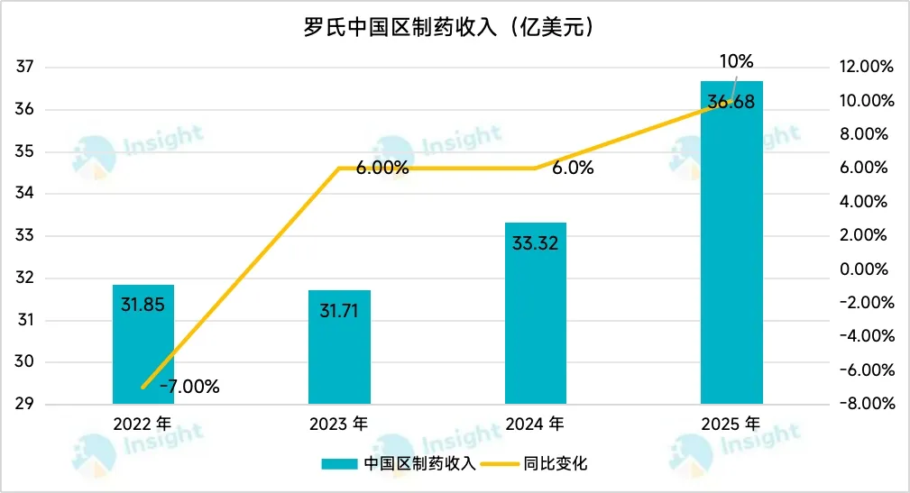2025 年,罗氏中国区制药业务收入 36.68 亿美元(30.34 亿美元),同比增长 10%,已然成为全球增长的重要引擎之一。