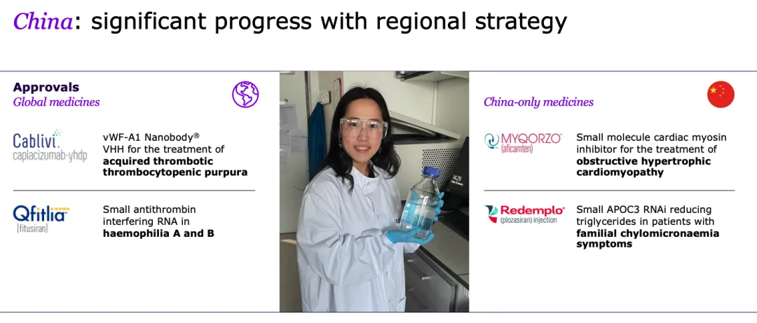 这是罗氏中国区近些年业绩表现最好的一年,主要受 Phesgo(帕妥珠单抗曲妥珠单抗皮下注射)被纳入国家医保目录、Xofluza(玛巴洛沙韦) 销售强劲以及 Vabysmo(法瑞西单抗)和 Polivy(维泊妥珠单抗)进入市场的推动。