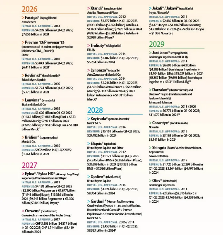图1.2026-2029年即将面临专利悬崖的20款“重磅炸弹”药物