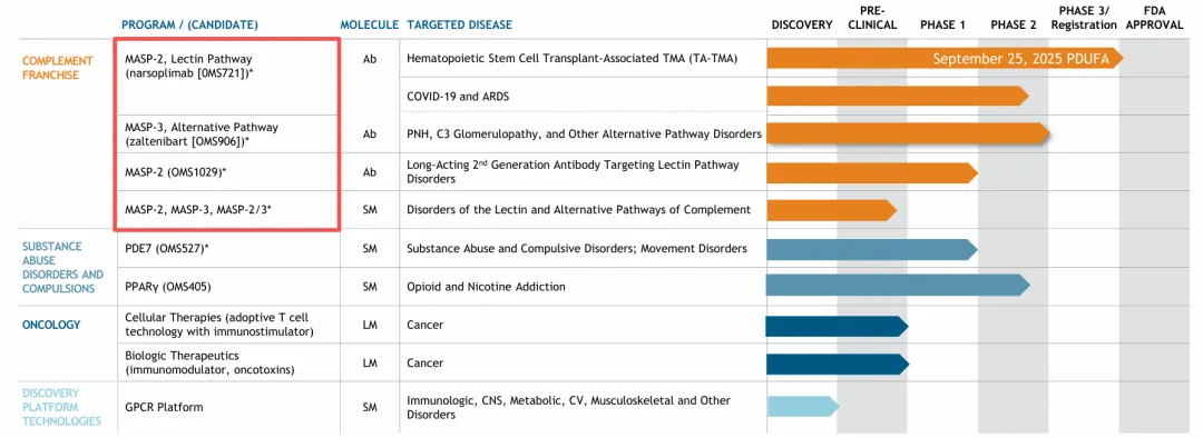 图:Omeros公司在研管线一览,来源:公司官网