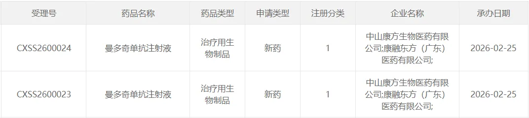 图1. 曼多奇单抗新药上市申请获受理,来源:CDE官网