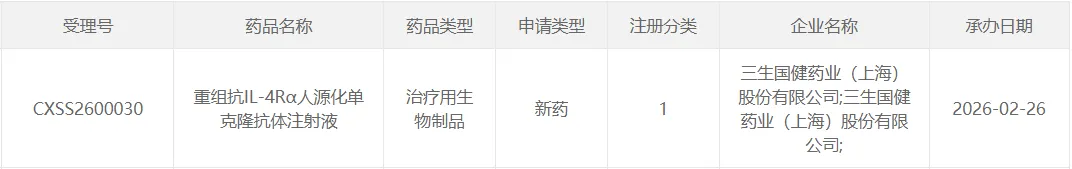 近日,国内IL-4Rα抗体赛道迎来新进展。2月25日至26日,国家药品监督管理局药品审评中心官网先后公示,康方生物自主研发的曼多奇单抗与三生国健自主研发的SSGJ-611两款重组抗IL-4Rα人源化单抗注射液的新药上市申请相继获得受理,适应症均聚焦于中重度特应性皮炎。