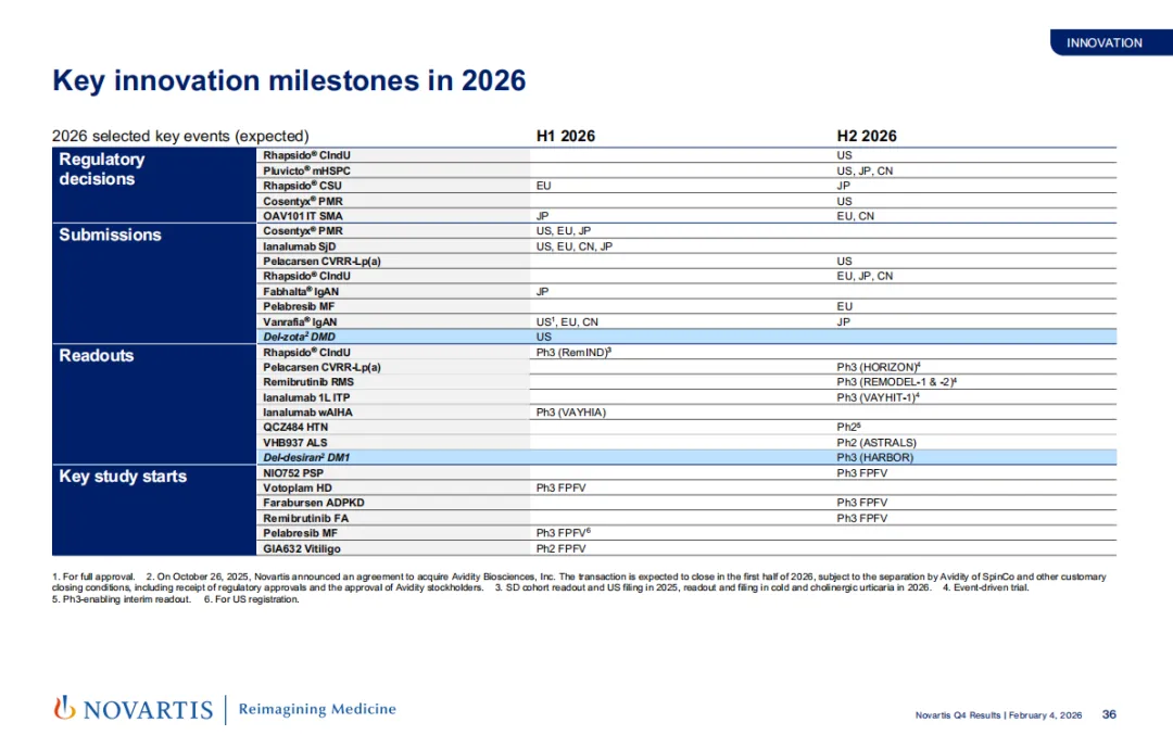 2026 年,诺华有望迎来 28 个关键监管获批/上市申请递交、9 个关键临床的数据读出,并启动 6 项关键临床试验。