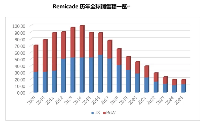 2024年10月起,强生从默克收回了欧洲、俄罗斯和土耳其区域英夫利昔单抗原研产品Remicade的销售权益,美国市场通过价格调整实现了销售额的增长,全球销售额与上年基本持平,最终以19.17亿美元收官。