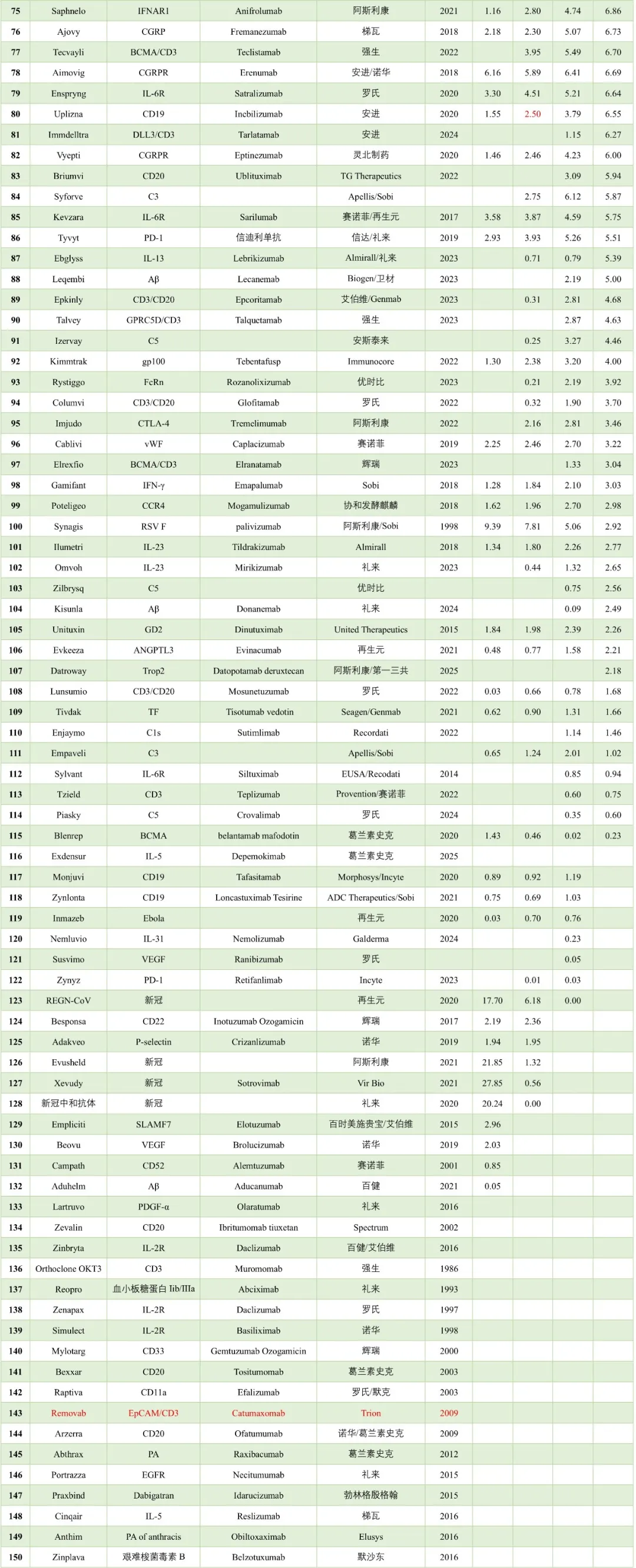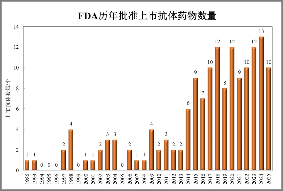 FDA累计批准153款抗体药物,其中118款为2014年以后批准。