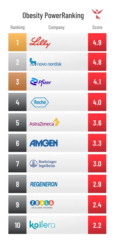 近期,专业医药研究机构Fenix Group 发布了《2026肥胖领域实力榜》(Obesity Power Rankings),甄选出肥胖领域最具增长潜力的10家企业。
